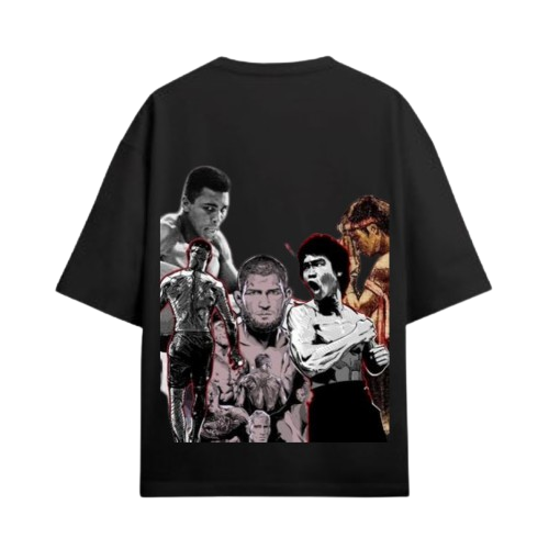 Channel the spirit of unbreakable warriors with the No Mercy Oversized Tee — a tribute to legendary fighters who defined strength, discipline, and domination. Featuring bold “NO MERCY” text on the front and a dynamic collage of martial arts icons on the back, this shirt is built for those who fight with heart and live with grit.